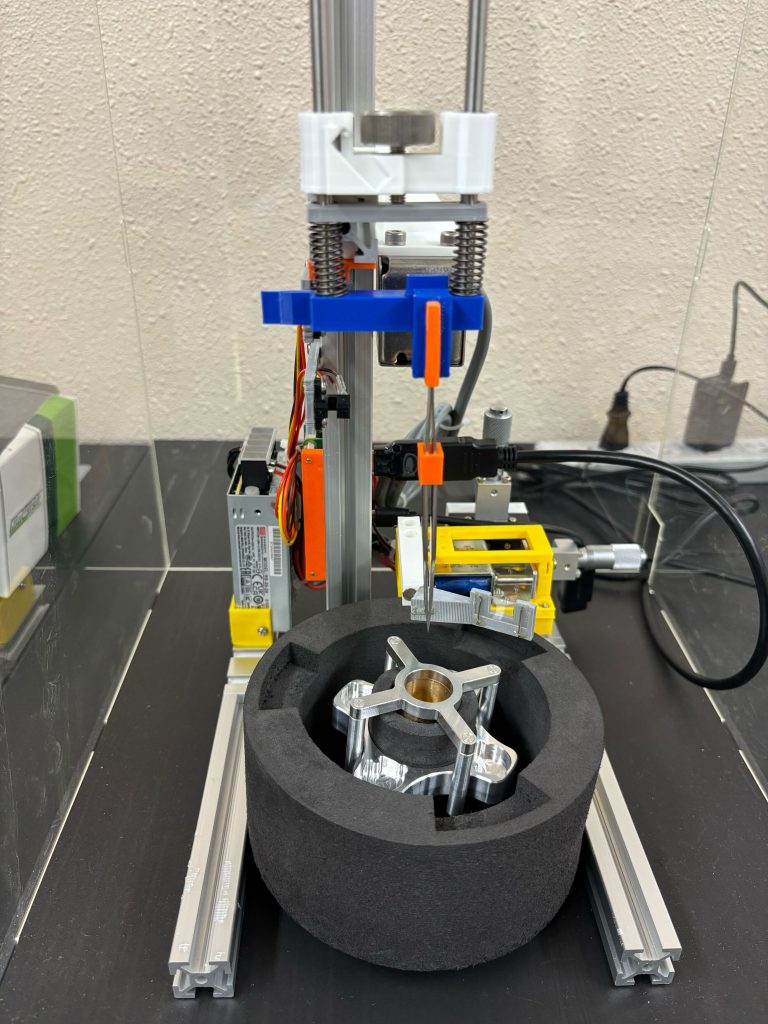 クライオ電子顕微鏡で観察する凍結試料を作製する装置です。数十ミリ秒という高速で観察グリッドを液化エタンに投下することで、非晶質氷薄膜を作り、溶液中と近い状態で生体高分子を固定することができます。